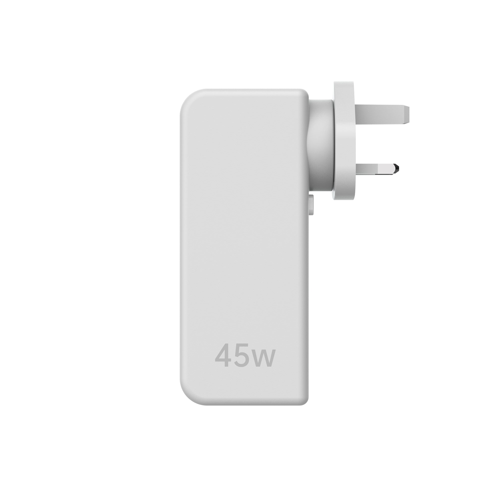 Compact form with a rotating plug, offering flexibility in tight spaces and easy portability. -