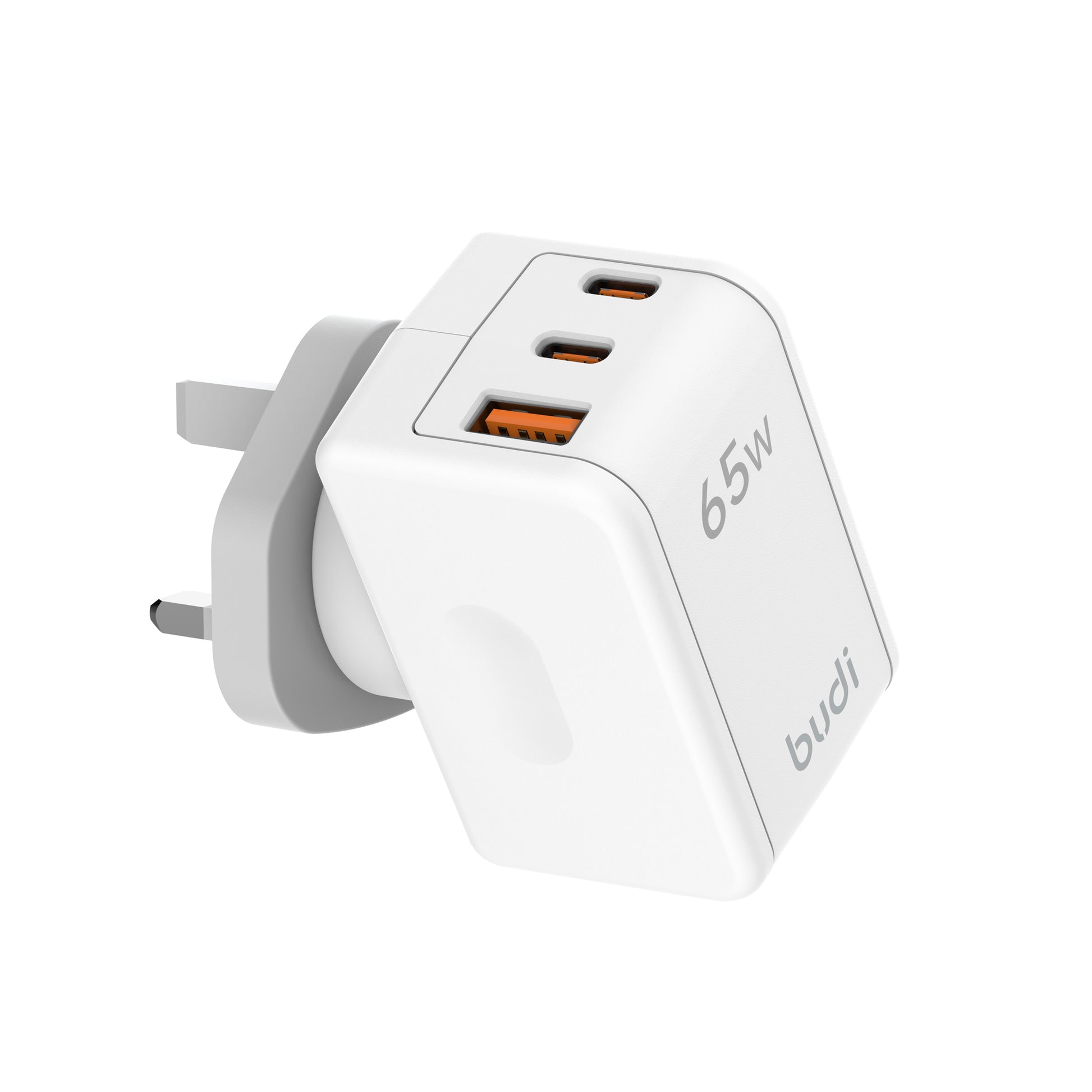 Features 2 × USB-C PD ports and 1 × USB-A QC 3.0 port, allowing you to charge three devices simultaneously—from smartphones and tablets to laptops. -