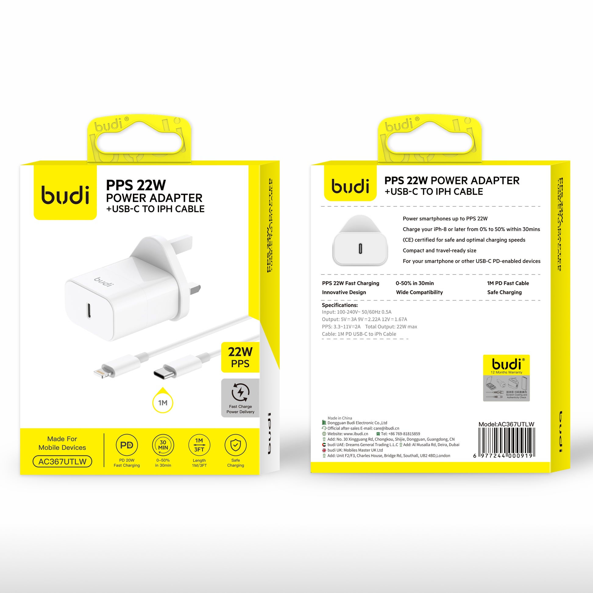 PPS 22W Power Adapter with USB-C to iPhone Cable Fast Charging Charger