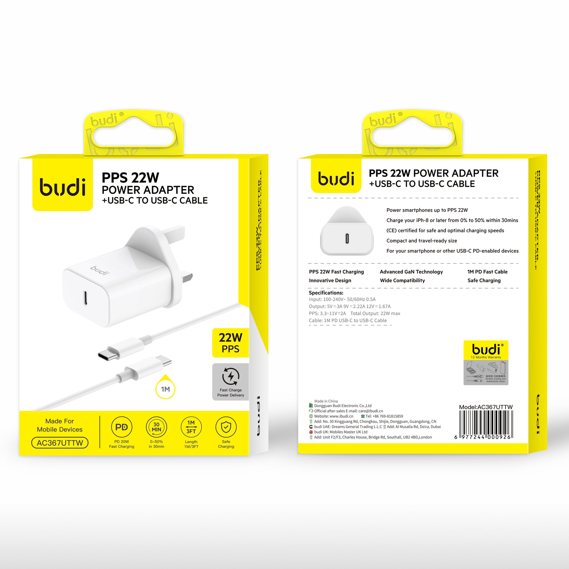 PPS 22W Power Adapter with USB-C to USB-C Cable Super Fast Charging
