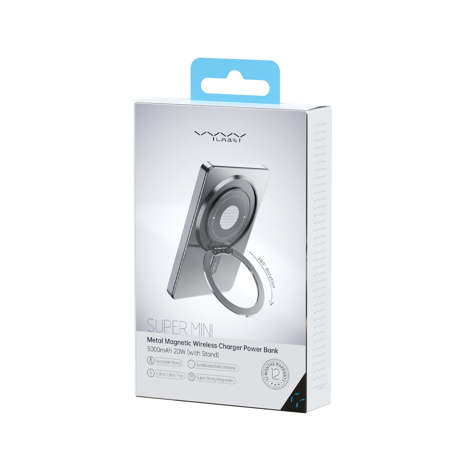 Super Mini Metal Magnetic Wireless Charger Power Bank 5000mAh 20W With Stand - Blue