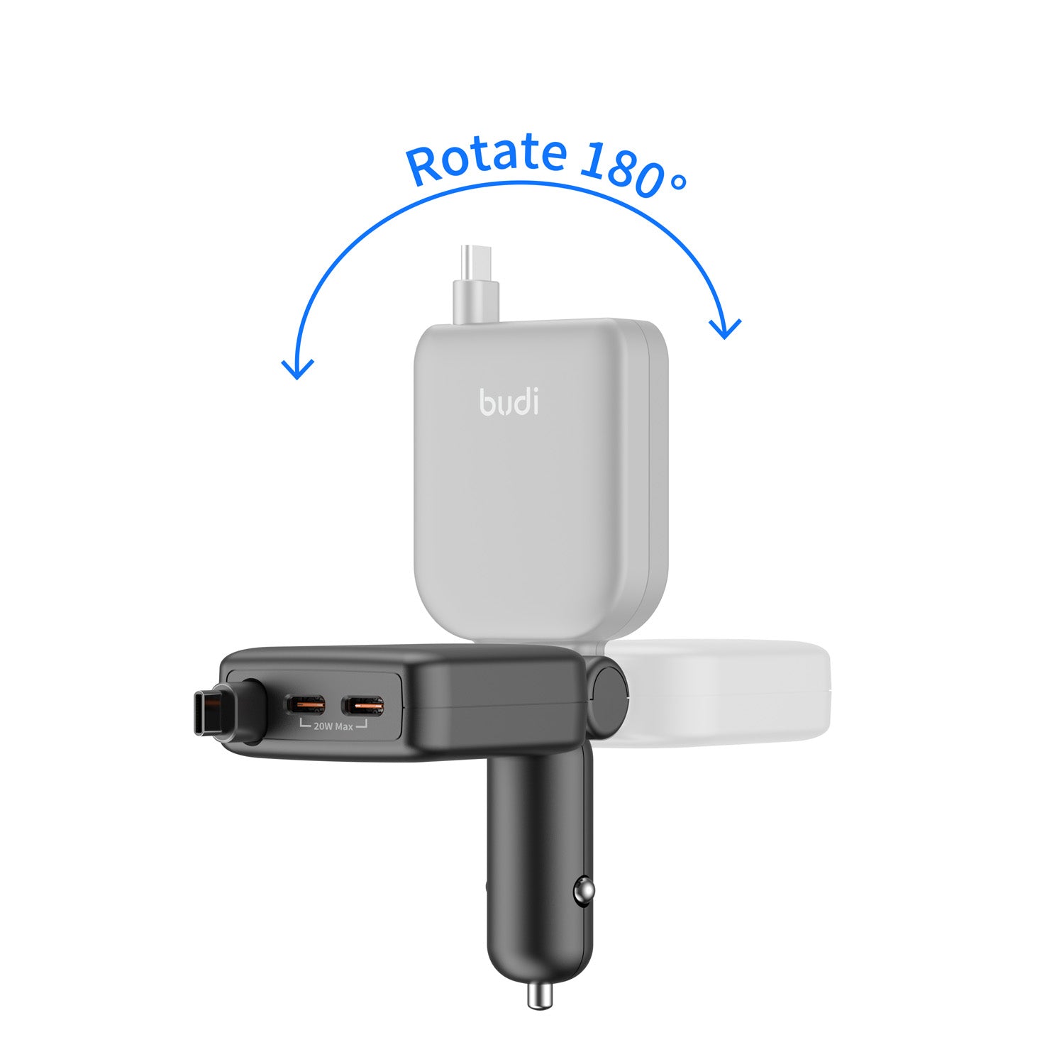 50W 3-Port Fast Car Charger with Built-in Retractable 72cm Cable